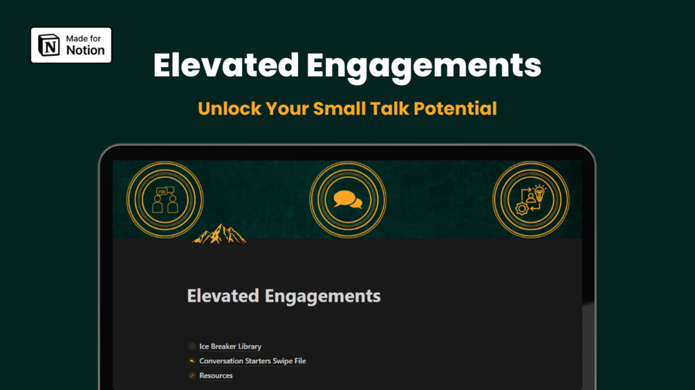 Elevate your confidence with "Elevated Engagements," a comprehensive Notion template designed to empower you in any social setting.